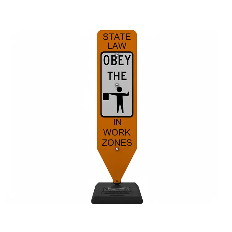 Protect work zone workers with this In-Street Flagger Warning sign that alerts drivers of any flaggers in the road. Newly developed and recently approved by the FHWA for use in work zones.